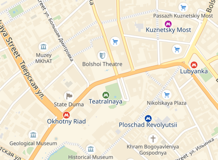 API позволяет отображать карты, локализованные на различных языках с учетом специфики отдельных стран. Например, можно показать карту с надписями на английском языке и обозначить на ней расстояния в милях (инструмент Линейка).