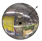 Для отображения панорамы на странице плеер выполняет специальные преобразования, в результате которых получается проекция панорамного изображения на внутреннюю часть сферы. При просмотре панорамы в плеере взгляд будет направлен из центра сферы.