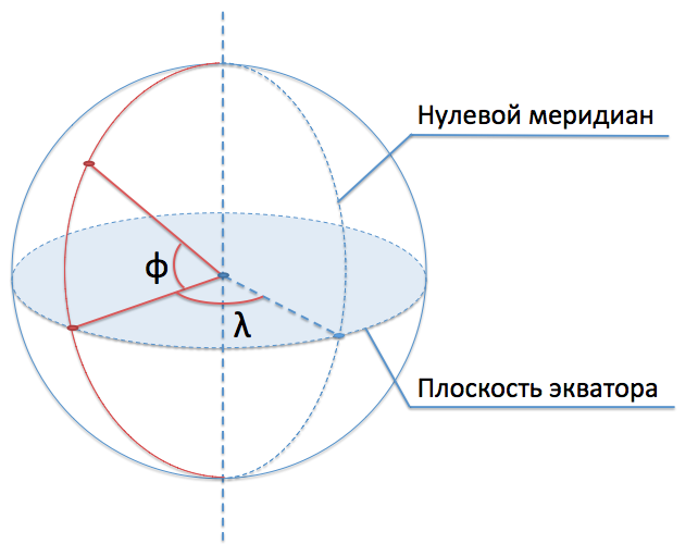 Положение точки на карте описывается с помощью некоторых координат. Если речь идет о карте земной поверхности, то обычно используют сферические координаты – широту и долготу.