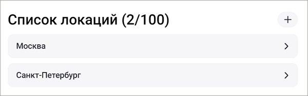 Если у вас уже есть список локаций, справа вверху нажмите +.