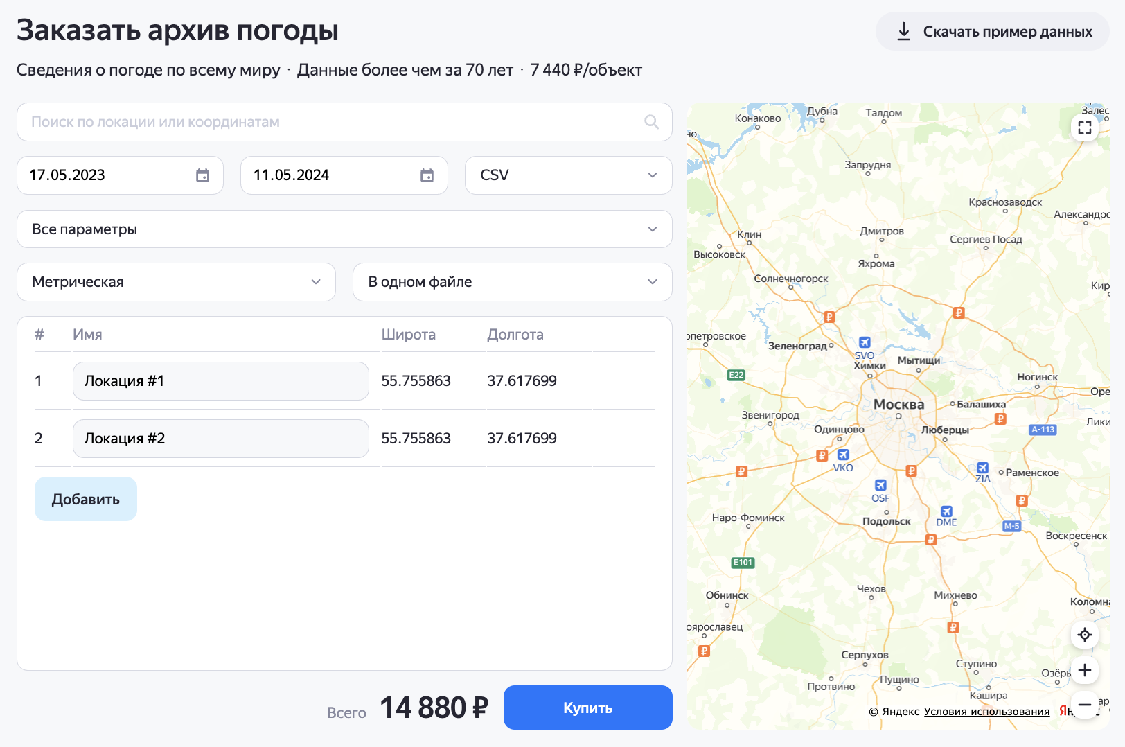 Чтобы оценить датасет, нажмите «Скачать пример данных». Если вы уже совершали покупки, нажмите «Мои заказы», чтобы посмотреть историю и статус заказов.