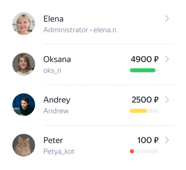 You’ll get push notifications about all the purchases your loved ones make. You can always view the payment history and change the limits in Yandex ID.