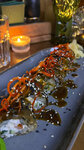 Вчера заказывали пиццу с грушей, пиццу BBQ, роллы с баклажаном и хрустящий. Пицца с грушей совершенно безликая. Тесто вкусное, но чрезмерно хрустящее. BBQ с низкокачественным кетчупом, пересолёная и ОЧЧЕНЬ жирная. После еды было плохо, тошнило. Ролл с баклажаном был вкусный. А вот хрустящий оказался сухой, авокадо твердый и безвкусный, сырой арахис сверху испортил весь вкус. Раньше обожала это место, а сейчас стало как кришнаитское кафе, только цены нереально завышены, учитывая качество и вкус блюд. Подача красивая. Место приятное. Но, музыка громкая и безвкусная.