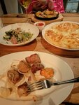 Прочитав один из нелестных отзывов, удивилась. Но побывав в ресторане, удивилась, чтобы так плохо работал сетевой ресторан. Официанта не дождаться, посуду со стола не убирают (приходилось выставлять освободившуюся плсуду на соседний пустующий стол). Салат "Чито" "никакой": майонезный соус пресный. Хинкали напоминали разварившиеся пельмени, форму не держали. Жареные хинкали были пожарены на сковороде, причем только с одной строны. "Хачапури на шампуре" был явно приготовлен в духовке: ни зажаристости, ни следа от шампура. В солянке копчености "не встретились", были мелко порубленные обычные сосиски. Расстроились: надеялись, что в нашем районе появилось приличное место.Увы