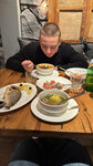В целом было вкусно, но не уверена, что мне можно очень верить, тк я была дико голодная. Брала хачапури и жаркое из грибов (не помню название правильное). В хачапури сыр классно расплавился и смешался с яйцом, тесто нормальное, в жаркое грибы интересные. Атмосфера в заведении специфичная (не суперуютно, музыку вдруг включили блатную, конфигурация столов не позволяет почувствовать себя в уединении), но зайти поужинать на районе - вполне можно!