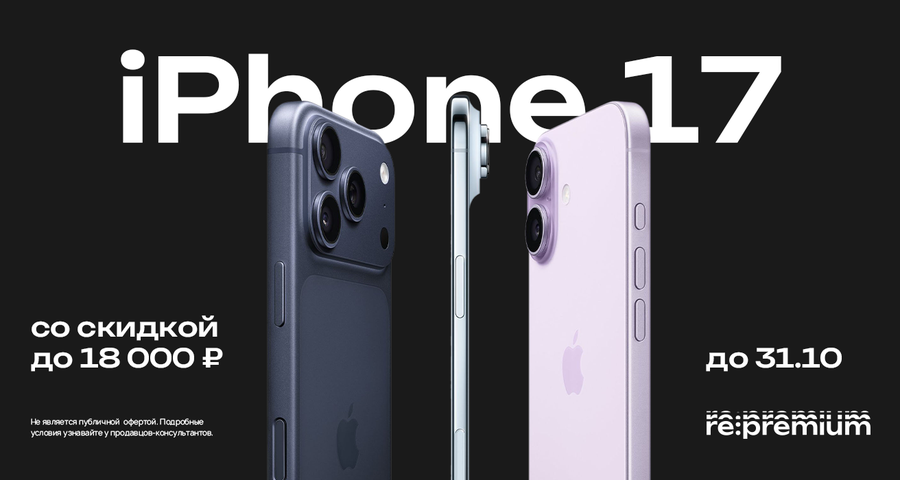 iPhone 17 со скидкой до 18 000 ₽ в re:premium до 31.10