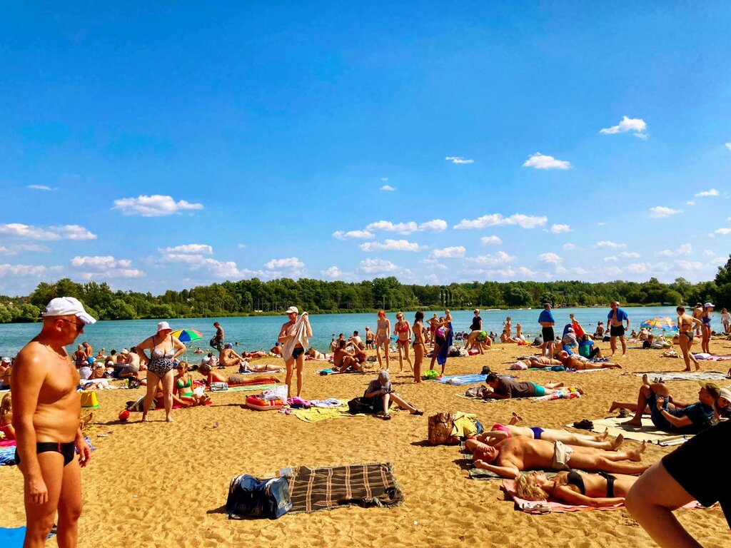 Отличное место для семейного отдыха, есть прокат лодок и водных велосипедов, переодевалка, ларёк с мороженым и прочим. Туалет я не заметила, поэтому, вероятно, он скрыт в озере). Поплавать вдоволь не выйдет, буйки очень близко к берегу, а спасатели в большом числе наблюдают и делают замечания всем, кто хоть на метр заплывает за буйки. С парковкой нет проблем даже в выходные, заезжаешь на прилегающую дорогу и вдоль паркуешься. Пляж песочный, вода чистая, утки плавают, рыбки.
