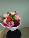Заказ # 5967000. Букет Юная леди. Стандартный Заказала букет знакомой на День рождения. Удобное приложение. Большой выбор букетов. Есть акции. Применяются бонусные баллы! Заказ оформили быстро! Удобно, что не обязательно знать адрес, достаточно номера телефона! Букет в первый день не совсем был похож на заявленный, но был очень свежим , слишком свежим. Бутоны были закрыты, но даже в таком виде он очень понравился имениннице. На второй день часть бутонов раскрылась. Надеюсь, что каждый день он будет больше и ярче. На первом фото - букет с сайта. На втором - букет на второй день.
