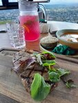 Шикарный вид и шикарное меню. Заняв видовой столик, мы, как любители стейков, не могли себе отказаться в куске мяса и заказали рибай средней прожарки. Мясо оказалось очень сочным, аппетитным, волокнистым очень вкусным! 10 из 10. Суп Том Ям прекрасен: у него очень сбалансированный вкус, правильно свареный правильный рис. Все ингредиенты на своих местах. Также как и стейк суп был подан с маленьким красным жгучим перцем) Обслуживание очень хорошее: спокойные, грамотные консультации. Персонал доброжелателен и не стоит по стойке смирно в напряжени. Это говорит о том, что в ресторане хорошее руководство. Отдельно хочу сказать про вид: открывается не только великолепный вид на город, но и на сероводородные ванны. Это "дикие" бассейны, где любой желающий может окунуться или погреть ноги совершенно бесплатно, заметьте))