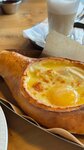 Рекомендую, если вы в поиске места с чудесным видом на горы и вкусной едой. Мы сидели за столиком у окна, вид в панорамные окна на горы просто потрясающий. По еде могу посоветовать салат с баклажаном, хачапури капрезе, салат в грузинском стиле. Хотели оценить десерт с Чебурашкой, но его не было в наличии, к сожалению. Взяли меренговый рулет с маракуйей, хороший, но остался незакрытым гештальт с Чебурашкой. Обслуживание вежливое, приветливое. Идеально, чтобы отдохнуть после подъема в горы или, наоборот, набраться сил перед прогулкой.