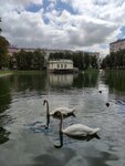 Прекрасное место для изучения произведений Крылова, тенистые зелёные аллеи, пруд, плавают уточки, парочка лебедей.