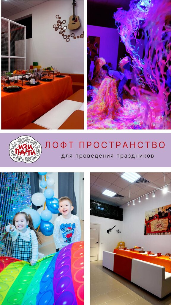 Отличное место и самые отзывчивые и душевные организаторы работают тут! Ещё с момента консультации по поводу организации праздника я отметила, что это не обычное рядовое место, где с тебя возьмут деньги, отработают свою программу чисто механически и все. Елена, вы потрясающий профессионал тонко чувствующий что действительно нужно гостю! Я так рада, что выбрали ваш лофт для проведения праздника! Все было идеально: очень грамотно распределено пространство, есть кухня со всем необходимым, детский лабиринт, интересная программа, в которой учитываются все пожелания. Аниматор просто великолепная девочка (жаль, не узнала как ее зовут) лучезарная, озорная, веселая. Видно, что работала с детьми в удовольствие. Все родители остались очень довольны. Дети счастливы. Вынос торта - ваша фишка очень запомнилась не только имениннику ))) Рекомендую лофт Изи Пати от всей души! И обязательно вернёмся к вам снова))) С благодарностью за чудесный праздник, который останется надолго в нашей памяти!