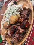 Всё просто идеально: шашлык из свинины, люля-кебаб из баранины, овощи на мангале, хачапури, салаты, оливки, зелень, вино. Обслуживание на высоте. Если бы можно было поставить 10 из 5, поставили не раздумывая. Но выбрав это место рассчитывайте на свои силы и кошелёк, порции большие (500-600). Спасибо🙏💕 за всё. Почувствовали радушие и кавказское гостеприимство.