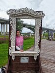 Если верить табличкам, то теперь это «Парк Зарядье». Для небольшого городка - вау! Много качелей, есть детские мини-батуты, кошка для скалолазов… Но если честно, надо во-первых, поддерживать то, что есть (тарзанка на детской площадке сломана, клумбы в сорняках, много мусора, требуется покос травы (газоном не назвать). Во-вторых, доработать пространство (маловато клумб, спец насаждений, парковых объектов). Хороший вид. Этого не отнять. Есть выставка наличников, что весьма интересно! Однако, к некоторым не подойти, т.к. они в высокой траве, покоса нет. Ну и указатель бы не помешал на главной дороге. А то парк практически под мостом, скрыт береговой рощей. Я не местная и мне пришлось еще поискать этот парк