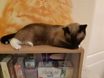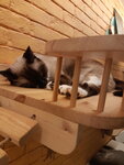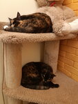 Котики забавные, мирные (всего их 15), но все почти спали (дневной тихий час), удалось поиграть только с несколькими, поскольку девушка запретила других будить, только гладить (что тоже понятно). Уставшая на вид девушка напоила нас чаем с печеньками. Одно существенное "но" и почему больше не вернемся туда - очень яркий запах кошачьих испражнений как шибанул в нос при входе, так потом долго ещё преследовал(.