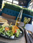 Очень красивый ресторан, место атмосферное. Официант быстро принял заказ, вежливо ответил на вопросы. Брали цезарь, шашлык из баранины и стейк семга. Цезарь принесли первым, был очень вкусный и большая порция (5 из 5). Следующим подали семгу, мягкая, сочная, отменный соус, вкусы играют на языке (5 из 5). Шашлык подали чуть ли не следом. Вкусный, сочный, жирненький, все как нужно. Но это не шашлык, а мясо на кости. По весу сомневаюсь, что 300 грамм. (4 из 5). Хорошее заведение!