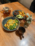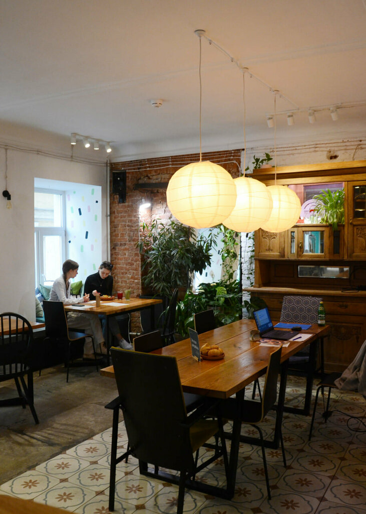 Посетили данное заведение впервые и были приятно удивлены. Вкусные веганские блюда, большие порции, очень приветливые сотрудники и чисто питерская атмосфера) Пробовала три блюда: 1. Домашняя паста с песто - очень щедрая порция тофу! (на фото уже три кусочка успели съесть) Вкусный соус и качественные тальятелли:) 2. Салат с мини оладушками - вкусное тесто, полезное дополнение в виде апельсина и шпината и самое необычное в этом блюде - сметана из кешью. Действительно похоже на настоящую сметану. 3. Бамбл-кофе. Радует, что здесь его делают на свежевыжатом соке, хотя стоимость такая же, как и в кофейнях, где сок используют обычный. Единственное, не понравилось, что не добавляется карамельный сироп, как в классическом бамбле, но это уже вкусовщина (и для кого-то это плюс) Не хватило спецовников с солью и перцем на столе. Концепция заведения очень порадовала. Приятно осознавать, что есть такие работодатели, которые создают комфортные условия не только для гостей, но и для сотрудников. Теперь одно из любимых мест - на сенной так точно:) Обязательно вернусь снова!