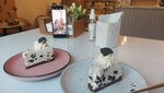 ⭐⭐⭐⭐ Звёзды за еду.Была первый раз, очень вкусно все, кофе потрясающее. Шу на любителя, мне не очен ь зашло, меренговый рулет тоже был не особо, лично мне не хватило хрустящего безе, которое должно быль внутри, и еще запах яиц, и плотная структура самого безе, пробовала в другом месте, и там оно было именно воздушное, тут плотное, крем не поняла какой был, но тоже не сильно понравился. Но все равно вернусь попробовать другие десерты. 1⭐ за отсутствие своего сайта с возможностью посмотреть все, что предлагает кофейня и сделать заказ онлайн. Тк то, что они выкладывают в истории вк публикуется только с названиями десертов, цен нет, это очень не удобно. Отсутствие собственной доставки тоже большой минус, заказывала бы часто, будь такая возможность. Отдельно разочаровала витрина без ценников, я приехала в кафе в начале 10 утра, а девочки очень не спеша расставляли ценники. Приходилось спрашивать каждый раз. Считаю, что к открытию уже все должно быть, уж точно ценники