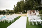 Делали свадьбу этим летом в шатре «Екатерина II» на 65 гостей. Шатер довольно просторный, квадратов 280-300 полезной площади, с драпировкой (но нужно следить, чтобы ее очистили от мошки и мух). Уместилось 8 столов диаметром 180см, президиум и танцпол. В самом шатре есть пристройка - зона для ведущего, диджея, экрана, света и проч. У шатра есть большая палуба, на которой можно организовать велком-зону, фото-зону и просто пространство для отдыха и проч. Палуба очень просторная, квадратов 800, застелена искусственным газоном, вид на воду отличный. Из минусов площадки - помещение для подрядчиков далеко не первой свежести и нуждается в обновлении тент, которым обтянута импровизированная палатка. Координатором от отеля была Виолетта Локтева, мы её помучали в процессе организации мероприятия знатно, но она справилась с нашими капризами стоически, все учла из хотелок и проконтролировала устранение недочетов 😁 Договориться и рассчитывать на уместную лояльность возможно, это приятно. В целом процесс самой подготовки ивента организован хорошо: обратная связь оперативная, разгрузка напитков сразу в холодос, чек-листы по важным моментам у площадки есть. На опыте, короче)) По еде не могу прокомментировать - не получилось поесть толком, но гости были довольны. Чек на человека предлагается делать исходя из 5500/гость. Но с фуршетом и если выбирать не стоковые блюда, этого мало. В среднем рассчитывайте на 7000/гость (без учета алко и напитков).