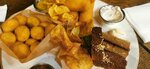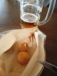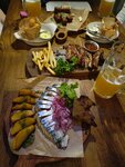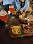 Наливки и пиво вкусное,хотя и не всё оказалось в наличии. С едой,к сожалению,нам не повезло: рулька оказалась очень сухой и жёсткой. Это очень расстроило,так как цель похода была рулька и пиво. Остальные закуски тоже не порадовали: в сырных шариках вместо сыра внутри было какое-то пюре кашеобразное,крылья были холодными( Думаю,что такая ситуация возникла из-за полной посадки и кухня просто не справлялась. Понравились рёбрышки и гренки. Ну и конечно пиво. Ещё была очень вкусная наливка лимончелло. Смородиновой и вишневой в наличии не оказалось