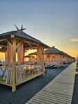 Классный beach Club, очень симпатичная территория, мы бронировали бунгало на пляже, в стоимость включено бунгало, полотенца + 2 лежака рядом ( чтобы позагорать на солнце). Также в Мандарине можно посидеть в ресторане+ официанты могут еду и напитки из ресторана принести в бунгало+ 10% к чеку. Но не порадовало, что море рядом холодное (так как горная река впадает). До этого купались на пляжах имеретинки и разница оказалась существенной. По-этому многие купаются в бассейне, но это доп. оплата к аренде пляжного бунгало или другой прайс изначально.