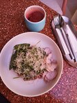 Была в Popmeal на обед, очень вкусно покушала. Люблю такое простое, понятное и полезное меню. Взяла тарелку с зеленью и креветками, а еще дополнительно гуакамоле. Классный лимонад на матче. Очень стильно, еще есть терраса, можно уютно завтракать и обедать на улице.