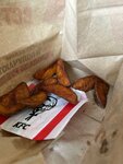 2.05.24 Заказ был в 11:30 Картошка и наггетсы Для начала, в это время не было в меню от слова - ничего… Были только в доступе : наггетсы , картошка и соусы с напитками👍 Ну хорошо, из предложенного взяла - наггетс и картошку по деревенски… Вопрос. ПОЧЕМУ дали просто сгоревшую картошку , если у вас нет ничего в наличии, кроме этих двух позиций , то ПОЧЕМУ вы даете сгоревшую продукцию, которая на запах воняет гарью и на вкус так тем более…