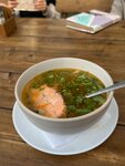 Половины меню нет, ожидание долгое, оплаты картой нет. Суп жирный, долма норм, вид отличный.