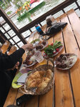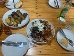 Шикарный вид!) шикарное место, на Озере, по кругу спорт площадка с уличными станками в ассортименте и турниками и брусьями, лежаками по кругу итд, Заказывал еду и хотел какой местный пирог, предложил пирог по описанию я понял в лаваше полумесяц с сыром и зеленью, но не в лаваше а в тонком тесте) мягче чем лавашь)) вобщем принес он мне верно как и писал выше такой пирог, только он был очень сильно помазан сливочным маслом, мне хватило разок попробовать)) и салат я заказал овощьной, я попробовал самый острый перец какой я только пробовал )) но не много конечно, редко кушаю острое, моему спутнику повезло больше, но и запрос был не замысловатый)) сырная тарелкаааа))оценка за мой не кайф, а так думаю если самому изначальней быть внимательней, то можно избежать не понятно) и вкусно по кушать, познакомился с челом он сказал у их самый лучший шашлык, в округе))