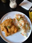 Кафе находится в старинном здании, атмосфера необычная. Выбрали это место для того, чтобы пообедать, когда были в Рязани. Заказывали салат из баклажанов, борщ, шницель. Кстати, многих блюд не было в наличии. В целом, можно пообедать, но показалось, что очень много кляра. Цены средние.