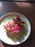 Вкусные блюда, необычные рецепты и сочетания, ооочень большие порции. Минус в том, что очень долго готовится и подаётся, ждать пришлось от 30 минут: получается, сначала принесли салат, а через 15 минут 2 блюда, и смотрели друг на друга, кто как ел....В целом, уютное место, только мало персонала, а это был выходной