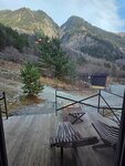 Отличный отель в горах. Есть вариант проживания в номере или в отдельном домике. Жили в домике с видом на горы (фото со стульями-это вид с задней стороны домика). Приветливый персонал (администратор Амина и официант в кафе,имя забыла,пусть меня простит). Завтрак шведский стол (овощи, фрукты, сыр, масло, хлеб, запеканка, мясная нарезка, напитки) и каша или яичница на выбор. Вкусно. Обед и ужин за дополнительную плату и очень вкусно) В отеле есть собаки, которые провожают в пеших маршрутах (указывают дорогу и охраняют). Можно самостоятельно ходить по тропам (у отеля стоит карта с маршрутами, на маршруте указатели или лента повязана на деревьях). Маршруты интуитивно понятны. Есть баня за доп. плату.