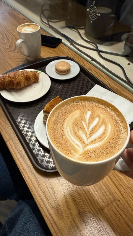 Приятное, чистое, вкусное и атмосферное место для общения, работы и расслабления! Много рабочих зон и зон для приема вкусняшек с кофе Кофе очень достойное и горячее и холодное вкусноеее) спасибо, вернусь обязательно еще!