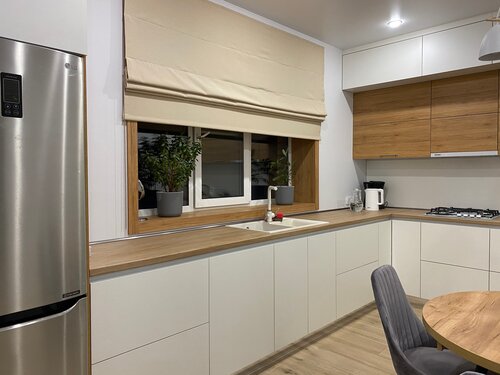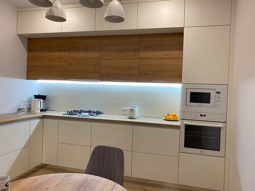 Заказывали кухню и мебель в ванную. При разработке дизайна учли все пожелания. Все сделали в срок. Несмотря на довольно большие размеры кухни, установили ее всего за 2,5 дня, что очень порадовало. Пользуемся уже несколько месяцев, и никаких нареканий. Очень довольны услугами данной компании
