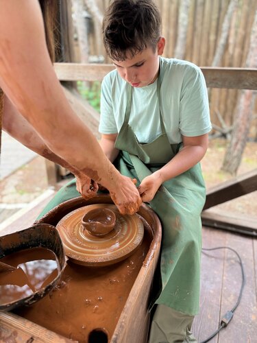Ездили в июне семьей и большой компанией. Провели в общей сложности часа 3,5. Скажу так - задумка хорошая, но прям рекомендовать что обязательно посетить, нет. Для разнообразия можно. Во-первых, такое ощущение, что театрализованная программа парка рассчитана на взрослых. «Юморок» соответствует. Если бы добавить хоть какой-то познавательной информации, было бы гораздо ценнее. Но! Вот вторая часть (отдельно оплачиваемая) очень даже понравилась! Гончарный круг, очень приятная девушка-мастер, рудник и поиск золота, скалодром, стрельба из арбалета! Тут претензий нет, дети с удовольствием во все это погрузились!!