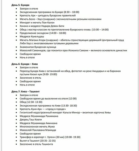 Недавно вернулась из путешествия по Узбекистану организованное Canaan travel даты с 28.04 по 05.05.2025 г. Тур приобретала , через Травелату, удивлена, что они выбрали такого ненадежного партнера. Покупаю через них путевки более 10 лет все было хорошо. Сначала + -Гостиницы все хорошего уровня , сочетание современного стиля и восточного колорита. Везде очень приветливый персонал готовый прийти на помощь по любому вопросу! - Рестораны в хороших туристических локациях, прекрасные интерьеры, выбор традиционных интересных блюд. - Везде транспортное сопровождение. Но минивэн очень жёсткий, переезды из города в город 5-6 часов трясёт сильно. Дороги между городами не очень. Минусы- -Встреча в аэропорту. В программе написано, что встреча с табличкой компании. Факт мужчина в темноте с бумажкой, где шариковой ручкой написана фамилия. Разглядеть найти в толпе проблема. -При заселение в отель в программе написан один отель, по факту не зарегистрирована ищите другой. Хорошо нашли на улице не оставили. -Программа скомканная, гиды в Ташкенте и Самарканде не очень интересно и понятно рассказывали. В Бухаре гид , почему то решила сократить экскурсионную программу до 15-16, вместо 18 и заявленного мастер - класса с приготовлением Бухарского плова не было вообще, да как и многого другого заявленного в программе. Самаркандский рынок и плов не увидели. - В Бухаре бадак с заселением, приехали группа 9 человек, говорят не можем принять, не заселим. Ни один номер указанный в программе трубку не берут. Потом отельные дозвонились куда то, с горем пополам заселились, у нас должно было быть 2 ночи, но на следующую переселили в другой отель. Пришлось опять перебирать чемодан. - У меня была путевка сингл должны быть номера с одной полноценной кроватью в 2 х отелях предоставили номер с 2- мя и 3 -мя маленькими кроватями которые не сдвинуть. Спать не удобно. - Далее программа в Хиву в программе описание "Переезд Бухара Хива с остановкой на обед, фотостоп на реке Амударья и на барханах пустыни Кизил кум (9:00- 19:00). " НО ФАКТ у меня почему то билет на поезд Из Бухары на поезде в Хиву указано выселение из отеля Бухары отъезд на вокзал в 5-30 и отправление 7-12 прибытие в 12-47. Предварительно были направлены билеты на эл.адрес на такое время. Когда приехала в Узбекистан на рецепшен дали какой-то бумажный билет без объяснений , я в сумочку положила и вожу с собой. В Бухаре перед отъездом решила проверить не пойму 2 билета на разное время , но на одну дату. Пишу руководителям программы вопрос мне по какому билету ехать, ответ не получила. Решила не рисковать поехала на вокзал на ранний поезд на 5-30 , который дали на бумаге, оказалась права. Но самое отвратительное ,что при этом не предупредили ни меня , ни водителей которые должны отвезти и забрать с вокзала.Если бы не проверила и не стала сравнивать билеты то спала и опоздала на поезд. Пофиг на человека. Приехала с горем пополам в Хиву, стою одна на вокзале обнаружила, что никто не встречает, хорошо, что у меня была связь и местная сим карта, дозвонилась приехал водитель, говорит я вас позже должен встречать . То есть билет поменяли, а предупредить никого не надо. Дальше интереснее, везёт в отель у него одно название отеля у меня в программе другое . Приехали в его я там не зарегистрирована, хорошо не уехал, оказался отель мой как в программе. Привёз, заселили и забыли. Смот