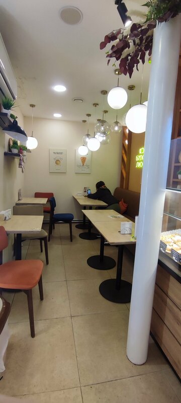 Очень атмосферное место с вкусной выпечкой и доступными ценами , есть диванчики и столики . Так же есть возможность зарядить телефон или же просить с ноутбуком и поработать ✨