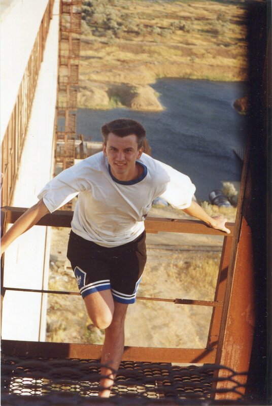 были тут в 1998 году. залезали на крышу энергоблока через еще целые машинные залы. На фотке как раз я нахожусь на одной из пожарных лестниц машинного зала