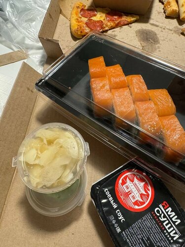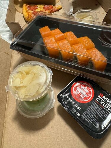 Заказал роллы, напиток и пиццу. Доставмли минут за 50. Еда в аккуратных контейнерах. Делают вкусно. Роллы аккуратные с хорошим балансом ингридиентов. Рис не переварен. Доволен. Спасибо!