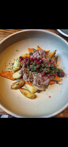 Кафе СеверА заманило высоким рейтингом 4,9 на Я.картах, фото меню, приехал из другого района отведать блюда северной кухни. Все же есть у нас заведения кто действительного достоин высокой оценки, а здесь еще есть над чем поработать: 1. Осадок остался, ожидание и реальность фото блюд и то что мне принесли. На фото порции больше и выглядит по иному. 2. Обслуживание, заказ приняли быстро, а потом пошел откат, расчет/оплату ждал 19 минут. 3. Когда принесли десерт не похожий на то что ожидал, официант сообщил что пойдет смотреть на сайте, уточнять у повара и пропал минут на 10..весь десерт опал, растаял .. 4. Конечно захотелось сравнить и остальные блюда, времени ожидания предоставили мне много, оленина с картофелем тоже не соответствовала фото из меню и реальности. 5. Размер порций, честно не соответствует стоимости , ожидалось что будет больше. 6. Обслуживание, при посадке в три стола - встало на стоп. Когда я попросил посчитать, официант отошел от моего стоила, подошел к новому и стал принимать заказ а там было все оооочень долго 7. Итого: десерт - отказ, размер и стоимость блюд - разочарование, салат - единственное что ок. Мой опыт - сугубо индивидуален. Рекомендации не даю, не все так великолепно как в большинстве отзывов.