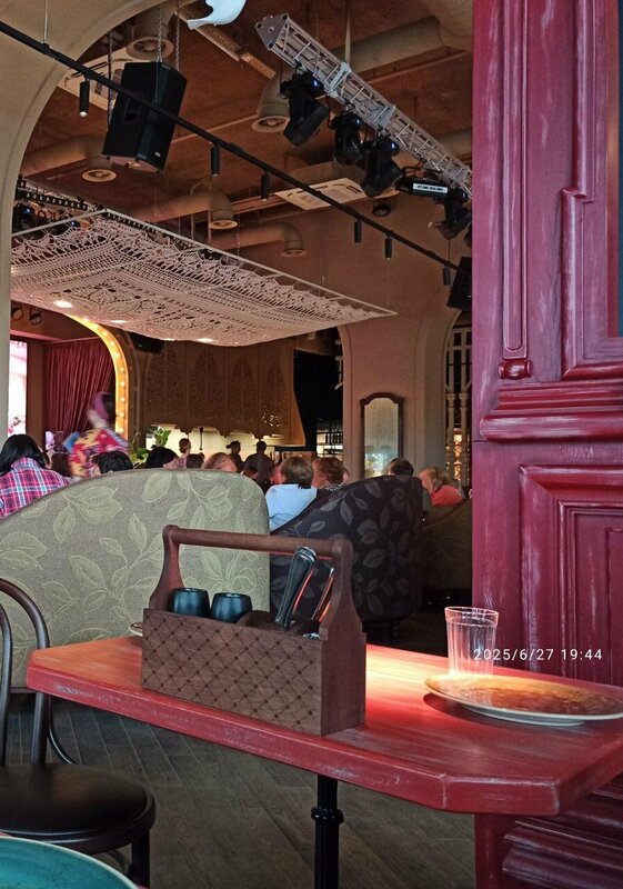 Первая мысль была встать и уйти, но потом взвесив: пятница, вечер, столик на 2х... придётся остаться-оставим шанс на кухне. 1. ехали в день, когда был потоп возле Руси, из-за погодных условий опоздали на 15 минут. Позвонили, уточнили будем ли мы и когда, пожелали хорошей дороги + звездочка. 2. когда приехали нас встретили с улыбкой, предложили угощения (угощаться не стали, врать не будем). 3. посадили нас за столик возле прохода в другой зал. когда кто то идет, тебя задевают, да и еда возле прохода не столь аппетитна. в стаканах которые стояли на столе была вода. после мытья или бывшего употребления, мы не знаем. попросили заменить. принесли стакан доп-но. другой убрали когда мы попросили (принесли еду и места на столе не хватало). попросили пересадить за другой столик от прохода, пересадили за соседний столик, там мы уже просили салфетки. их просто переставили с другого стола. и позже недонесли т.е. другие гости так же будут выпрашивать, но это уже другая история. 4.наверное здорово сидеть, когда столик НЕ на 2-х. я понимаю, что это концепция ресторана, но, чтобы вы понимали, столики на 2-х обязательно будет диванчик/кресло и второй исключительно деревянный стул. Я все понимаю. Но когда мы отработали тяжелую неделю и хотим посидеть, расслабиться и наслаждаться едой, одному гостю комфортно посидеть не получится. это стало главная причины уехать в течении часа, и отбило желание заказать еще что то. 5. бронь была в понедельник на пятницу. кроме огромной опоры, мы мало что могли наблюдать на сцене. 6. когда бронировали, указали что едем отмечать день рождение, как итог мы посмотрели, как поздравляют других. нашего именинника нет. я как понимаю возможно причина стала то, что мы уехали относительно быстро (были там 1 час 5 минут+15 минут мы опоздали=1 час 20 минут, а бронь стола 2 часа, посадка почти полная и мы не стали рисковать и сделали весь заказ сразу. приготовили быстро. думаю если было что-то более сложное, мы могли не уложиться в обозначенное время брони). 7. тут я ставлю 2 звезды за кухню. мы ехали целенаправленно поесть хинкали жареные. в Самаре мы не можем найти именно вкусные. и ода. свершилось. мы заказали жареные хинкали всех видов (их там 3). + хачапури- это отвал вкусовых сосочков))) хинкали бесподобные, хачапури тает во рту+ подача шикарна, хоть мы и любим помакать в желток, но то как его перемешивали + рассказ ничуть его не испортило. Спасибо вам. как итог: - стаканы с водой - салфетки стоят через стол - столик на 2х с деревянным стулом (крик души, сидеть на нем крайне неудобно, оставаться и заказать еще что-нибудь отбило все желание. столы с кол-вом людей больше, мягкие/удобные) - столики есть у прохода (пыль от мимо проходящих летит на еду) - именинника не поздравили (был случай в другом ресторане. пришли праздновать день рождение и так получилось, уехали через 1 час 15 минут. попросили счет. перед тем как отдать счет поздравили- это был приятно). тут нет. мы посмотрели на других и ушли. - еда (в данном случае хинкали и хачапури) БЕСПОДОБНЫ! Самые вкусные в Самаре! То ради чего стоит вернуться. Тесто тает, в хинкали мясо сочное, течет тот самый сок. хачапури ... о этот бесподобный сыр... мммм... вкуснота! 1 звезда за звонок и приятную встречу + 2 звезды за кухню. фото столика у прохода+ видео вкусной подачи не грузится(