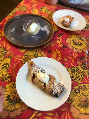Лучший ресторан не только Тамани, лучший ресторан побережья. Со входа сразу погружаешься в классную атмосферу, декор, мебель, музыка все в тему. Официант! В городах миллионниках в хороших ресторанах я бы хотел видеть официанта такого уровня. Он всегда рядом, но при этом всегда незаметен. Никогда не обделить вниманием! Ассортимент блюд у нас был разный и всегда их подавали так, как будто мы сделали предзаказ. Все очень быстро и при этом вовремя. Кухня! За 2 посещения заведения мы попробовали: 1. Закуска с селедочкой - классная. 2. Язык с хреном - очень понравилась! 3. Жареный сыр с брусникой - отлично заходит к пиву. 4. Пили безалкогольное пиво КРОП - рекомендую! 5. Морс черносмородиновый - поверьте ягода там не для красоты, очень насыщенный. 6. Борщ - подача великолепная, пампушка, сало мммм, за перчик для остроты отдельное спасибо. Деревянная ложка - отправила меня в детство прямиком к бабушке. Единственный вопрос - по свекле. Видимо на Кубани в борщ она не идёт. Не первое место где я ем борщ тут без свеклы. Но при Этом борщ классный! Рекомендую однозначно! 7. Уха. Моя супруга уху не ест, но тут даже она её похвалила. Мы с севера и в ухе знаем толк, тут она хороша! 8. Пюре с котлетой по Киевский. Это единственное блюдо которое я бы не заказал повторно. На мой вкус в котлете очень много панировки, обвалки, и не хватило масло внутри. При этом мяса там хватает. Но на мой вкус - не зашло! 9. Вареники. С картошкой понравились, хорошо поданы, не слипшиеся, вкусные. С капустой 7-8, немного капуста не на наш вкус). 10. Отдельное спасибо за десерт. Мы попробовали штрудель с вишней. Будьте аккуратны, я бы сказал- это блюдо на двоих, не все успел сфотографировать в том виде к котором подано, очень вкусно выглядет и хочется съесть, о фото вспоминал позже. Фото десерта - эта его половина. Штрудель ВЕЛИКОЛЕПНЫЙ. Пальчики оближешь. Оба раза не получилось уйти из заведения не объевшись. Огромное спасибо заведению и персоналу. Мы обязательно к Вам вернемся!