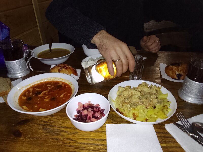 Приходили на бизнес ланч и на ужин на Старый Новый Год. Обслуживание очень быстрое. Порции огромные. Цены для Суздаля демократичные. Музыка вечером, можно потанцевать. Все очень вкусно, только разносолы и селедочка показались покупными, но тоже вкусные. Солянка, гороховый, рыба, рис, картошка, подлива с курицей и грибами и выпечка прекрасны( бизнес ланч 400р) Но после такого обеда работать невозможно, оооч много и супер сытно. Одного обеда вполне хватит на двух человек. Женщине не съесть. Ужин: салат с креветками, купеческий, кролик тушеный, бифштекс из лосятины( это две большие котлеты) и цветная капуста со сметаноой и сыром( правда, принесли брокколи, но мне было не критично, просто уточните). Горячее подается в сковородочках, не остывает долго. Опять не смогли все съесть. Цены на алкоголь, пожалуй, самые низкие из всех заведений. Плюс можно купить паштеты, тушенку, пряники, медовуху, варенье в подарок друзьям из путешествия. Нашли кафе так, спросили у местных куда они ходят...нам сказали Ландыш и Берега. И еще, это не ресторан, все просто и качественно, для своих. Тем кто загибать любит пальцы и выеживаться над обслуживающим персоналом не подойдет. Вам, друзья, в Империалъ, где стопка водки от 800р. Вот там куражьтесь!