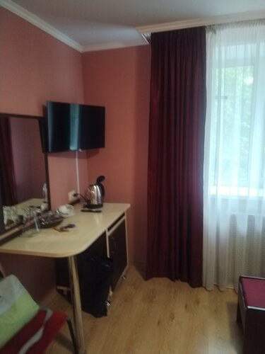Отель немного совдеповский, но в целом все отлично, соответствие цена-качество. Звукоизоляция хорошая, в стоимость входит шикарный шведский стол на завтрак Находится в самом центре города, в двух минутах магазин магнит, напротив отеля городской парк аттракционов, при гостинице имеется кафе с очень дешёвыми ценами. В номере было сильно холодно так как отопление отключили, а на улице холодно, но по просьбе через минуту принесли обогреватель, в коридоре стоит кулер с водой.Была в разных отелях этого года и этот выигрывает в цене и качестве. Очень советую 👍