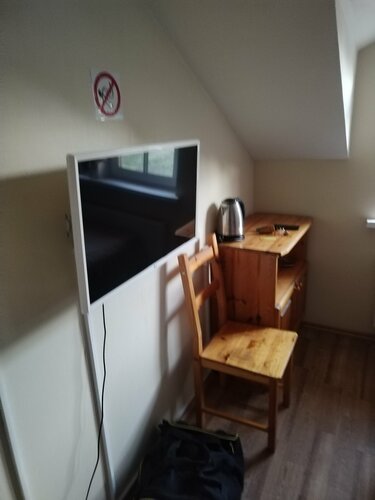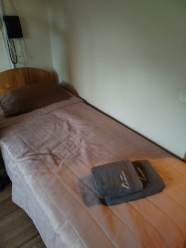 Уютный мотель рядом с Игорой, приятно порадовали отличные кровати с хорошим матрасом и удобными подушками. В отеле есть кафе где можно съесть вкусный комплексный обед за 500 рублей. В стоимость номера входит завтрак! Из минусов это один общий холодильник в фое на первом этаже и главное что мы довольно часто путешествуем и в первые в отеле запрещено заходить в уличной обуви, то есть сразу при входе предлагают тапочки(не одноразовые) и предлагают оставить свою обувь там же на полочке. Естественно мы ее забрали ее с собой.