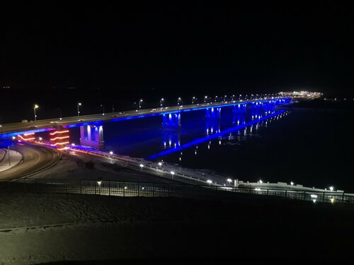 Очень красивый вид на город и мост через реку. Жалею, что не успела в режимное время и сняла только на телефон, а не нормальной камерой. Но в всё равно, впечатляет)