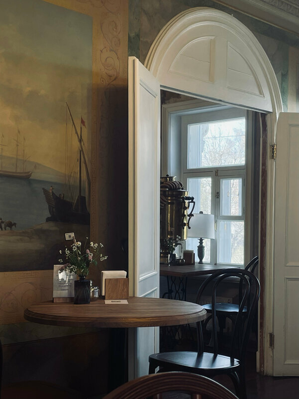Кафе расположено в уникальном историческом доме с масляной живописью на стенах. Получается, что вы можете выпить вкусный кофе буквально в окружении картин 19 века. Еда и обслуживание так же заслуживают наивысшей оценки. Моё любимое место для встреч с друзьями и завтраков наедине с собой. И на веранде там тоже здорово летом. Короче, такого местечка больше не найдёте нигде.