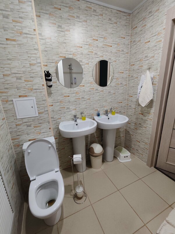 Останавливались в семейном номере. Забавно сделана ванная комната. Два душа и две раковины. Для большой семьи самое то. Конечно все маленько подуставшее. Что то надо под крутить что То заменить. Но в целом можно простить недостатки. Тем более в болгаре и так немного хороших мест . Если честно после длинной поездки хотелось прогреться в бане. Но вот этого у них к сожалению нет.