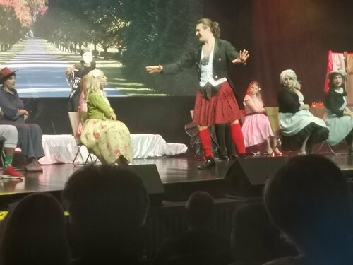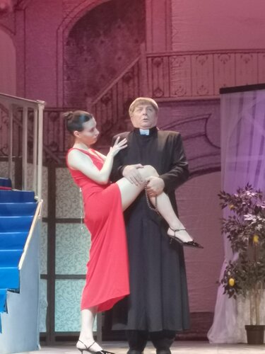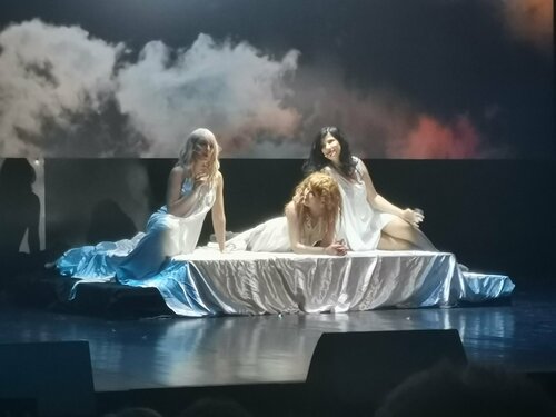 28.09.25 были в Конгресс-холле на Вернадского на чудесном мюзикле "Иствикские ведьмы". Прямо не ожидала, что увидим такое великолепное шоу! Отлично решён вопрос с декорациями, постоянно меняются шикарные цветные слайды. Отличные красивые костюмы. А уж голоса у всех - просто великолепные! Жаль, что не купила программу... Очень и очень понравился актёр, играющий Дэррила Ван Хорна, высокий, статный, пластичный, хорошо поющий и танцующий, с необыкновенно сильной мужской харизмой!!! А сюжет прост... Три разведенные дамы: скульпторша Алекс, виолончелистка Дженни и редакторша Сьюкки скучают вечером в богом забытой дыре, малюсеньком городишке Иствик. И каждая думает о большой любви и мужчине своей мечты. В один момент все они загадали и пожелали именно этого... На следующий день в самом дорогом доме, похожем на дворец, появляется новый хозяин - красивый и импозантный Дэррил Ван Хорн. Постепенно к каждой из этих троих женщин он находит подход и делает их своими любовницами. Они все вместе веселятся и колдуют. И никто не знает, что он - исчадие ада. Потом он надоедает дамам и они перестают ходить к нему в гости. А он переключается на чистую и невинную девушку. А вот этого три наши прелестницы не могут допустить. Дэррил со своей юной избранницей уже в церкви на венчании... А три наши дамочки усиленно колдуют, да так, что во время свадебной церемонии он исчезает и возвращается к себе в ад... Мюзикл совершенно великолепный, ощущение, что мы побывали на Бродвее! Я очень довольна!!! Очень удивлена, что был неполный зал. У нас были места на 7 ряду левой стороны по цене 2100 рублей. А мы прекрасно пересели на 5 ряд партера ра в самый центр, где билеты по 5 тысяч. Зрелище просто прекрасное, я даже не ожидала. Удивительно, что я. - коренная москвичка и театралка, до сих пор не знала про это место. Очень хорошая акустика и кондиционированием в зале Прекрасные чистые туалеты. Буфет как везде: фужер шампанского 750 рублей, бутерброд с семгой - 400 рублей. А главное, что это заведение находится в 5 минутах ходьбы от станции метро "Проспект Вернадского". Очень и очень рекомендую любителям мюзиклов!!!