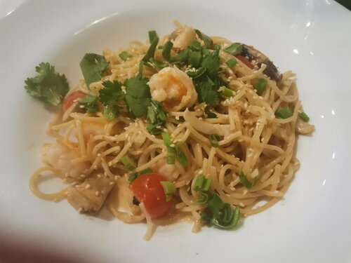 Посетили это заведение 30.11.25. Вообще-то мы с подругой шли в театр, но хотелось поболтать перед театром 1,5 часа. Но рестораном назвать это заведение, даже сетевым, язык не поворачивается. А для центра Москвы вообще нечто несусветное... Заведение находится глубоко под землёй. Хостесс отсутствует по определению. Гардероба нет. Интернет не работает. Своего пароля к вай-фаю не дают. Шампанское мне принесли тёплым, явно, не долив до 125 мл. В салате из хрустящих баклажанов отсутствовал сливочный творожный сыр, обязательно положенный по рецептуре. Из-за любимого соуса Том Ям, я заказала спагетти с Том Ямом. Мало того, что спагетти долго варили, так и соус Том Ям в них вообще отсутствовал, от слова совсем!!! Не могу отметить сервис, официантка нас в упор не видела при, практически, пустом зале. Очень долго искали на столе солонку и перечницу, так и не нашли. Потом пришла официантка и сказала, что все это в пакетиках, трубочками, находится с зубочистками. Что за издевательство? Я что, еду в плацкартном вагоне поезда?!! Я же пришла в ресторан, пусть даже и сетевой! Не понравилось абсолютно ничего!!! Подруга выбрала этот ресторан только из-за территориальной принадлежности, потому что от него было близко идти до театра. Вобщем, это едальня для нищей молодёжи, которой больше негде потусить. Категорически НЕ советую для посещения!!!